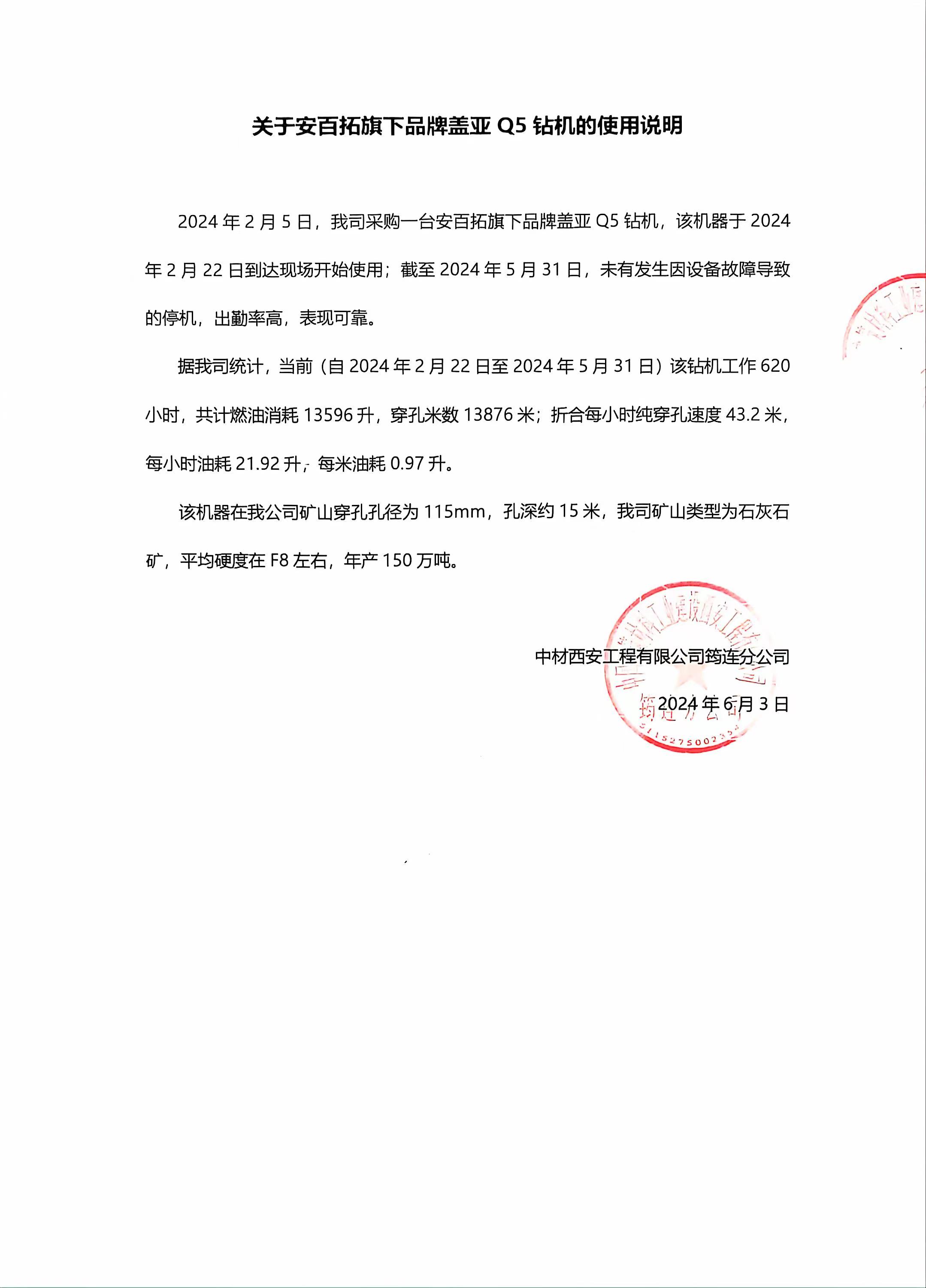 Q5露天潜孔钻机中材矿山应用案例